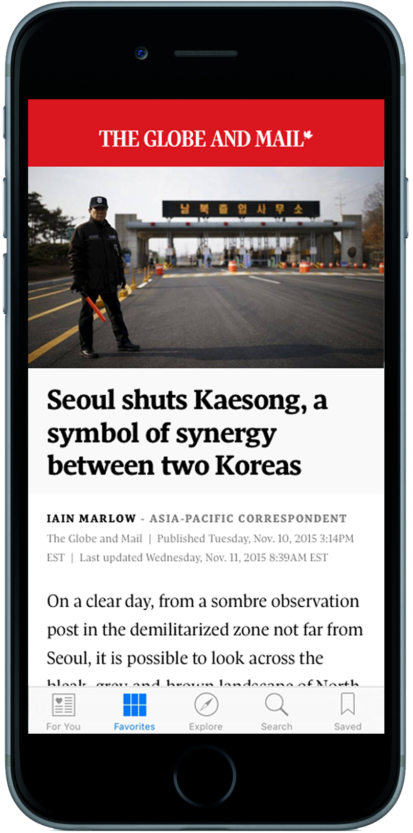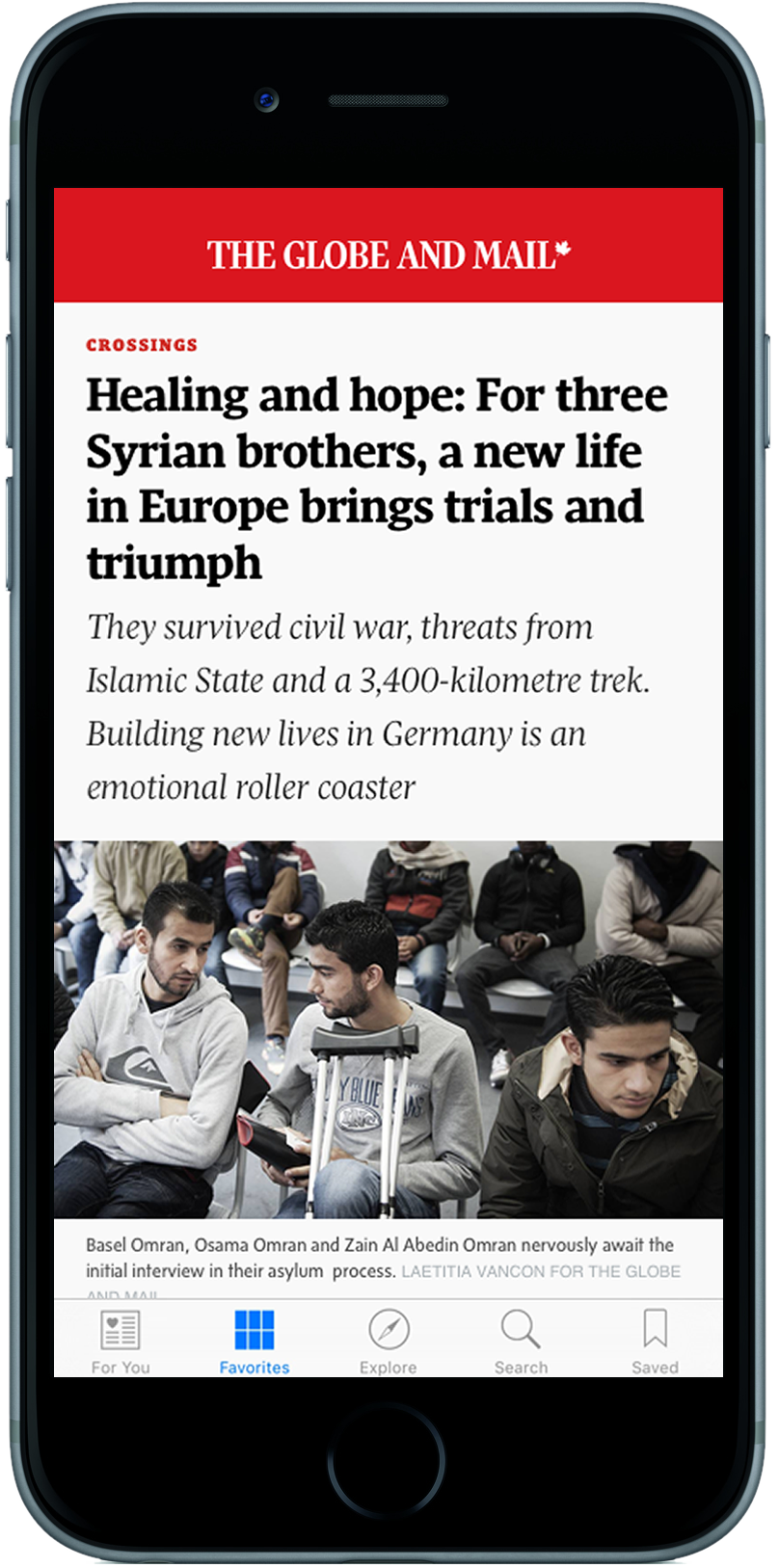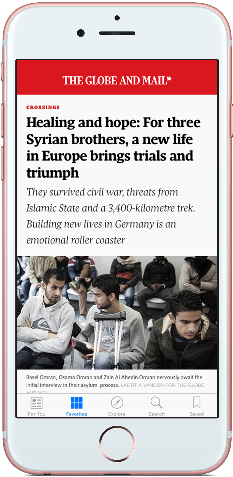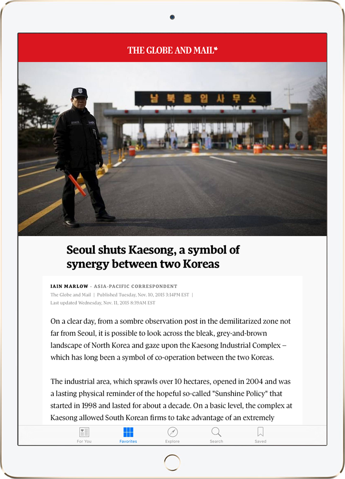 The Globe and Mail's content made available as rich story experiences under its official channel within the Apple News app.
