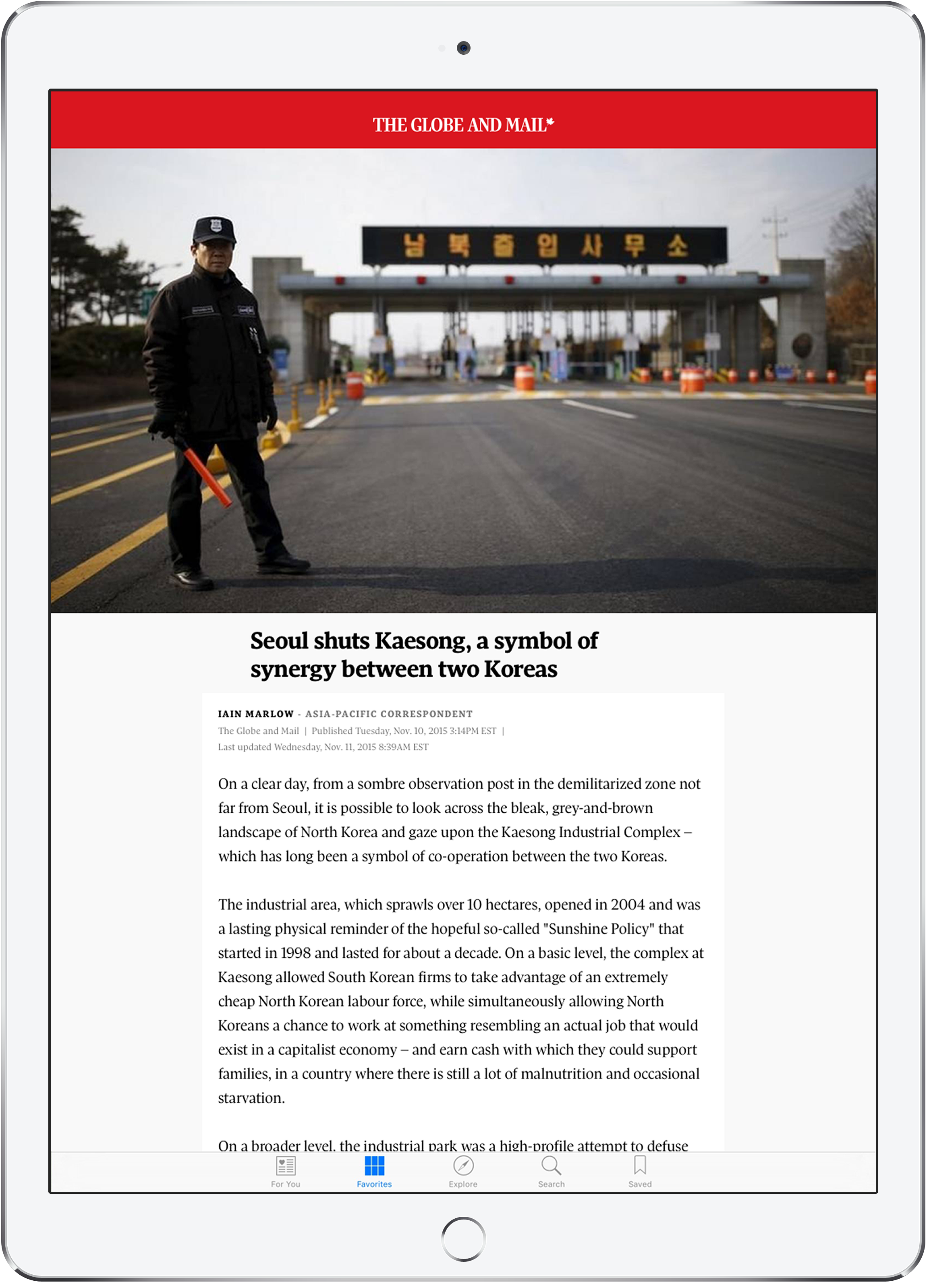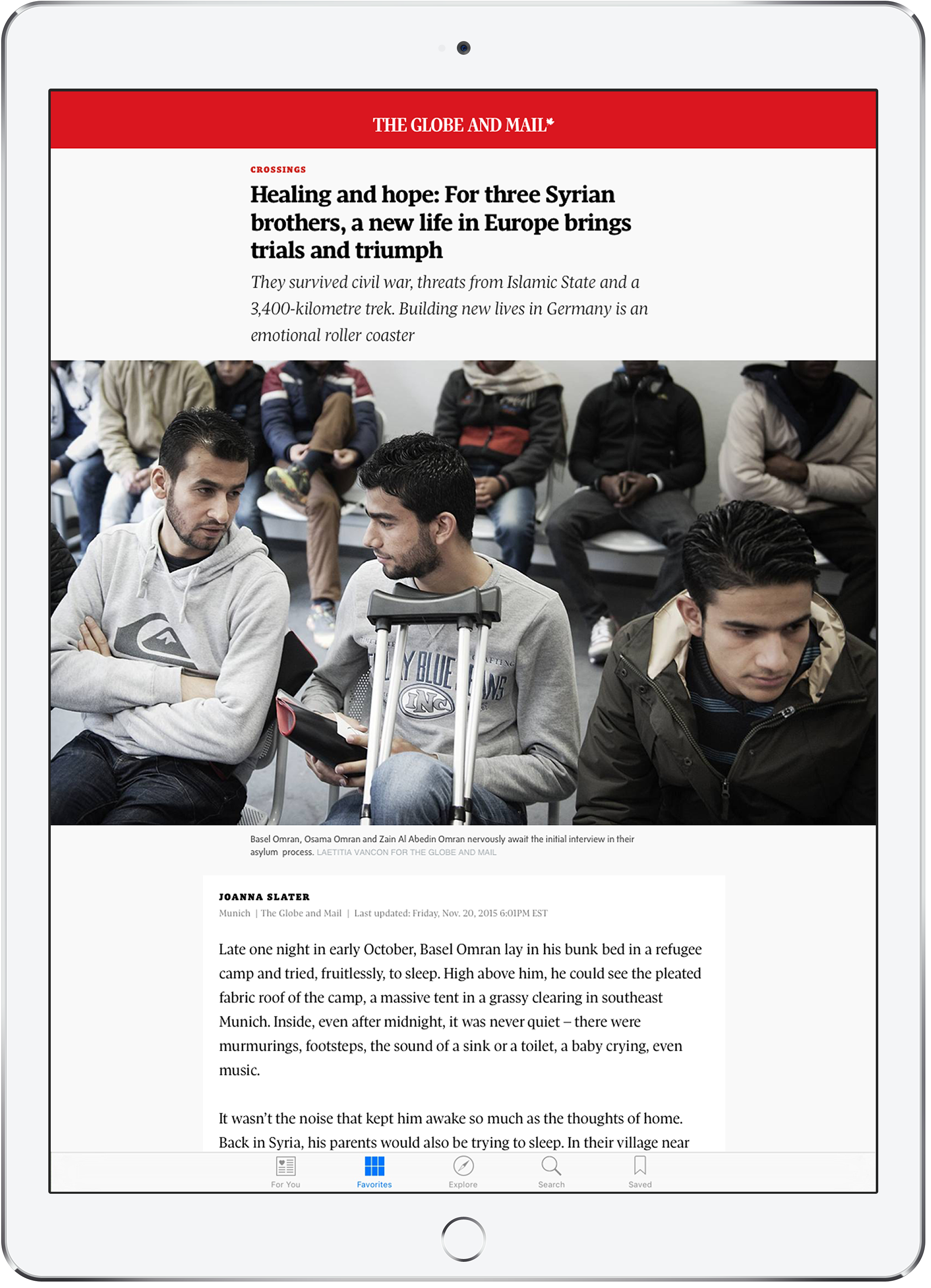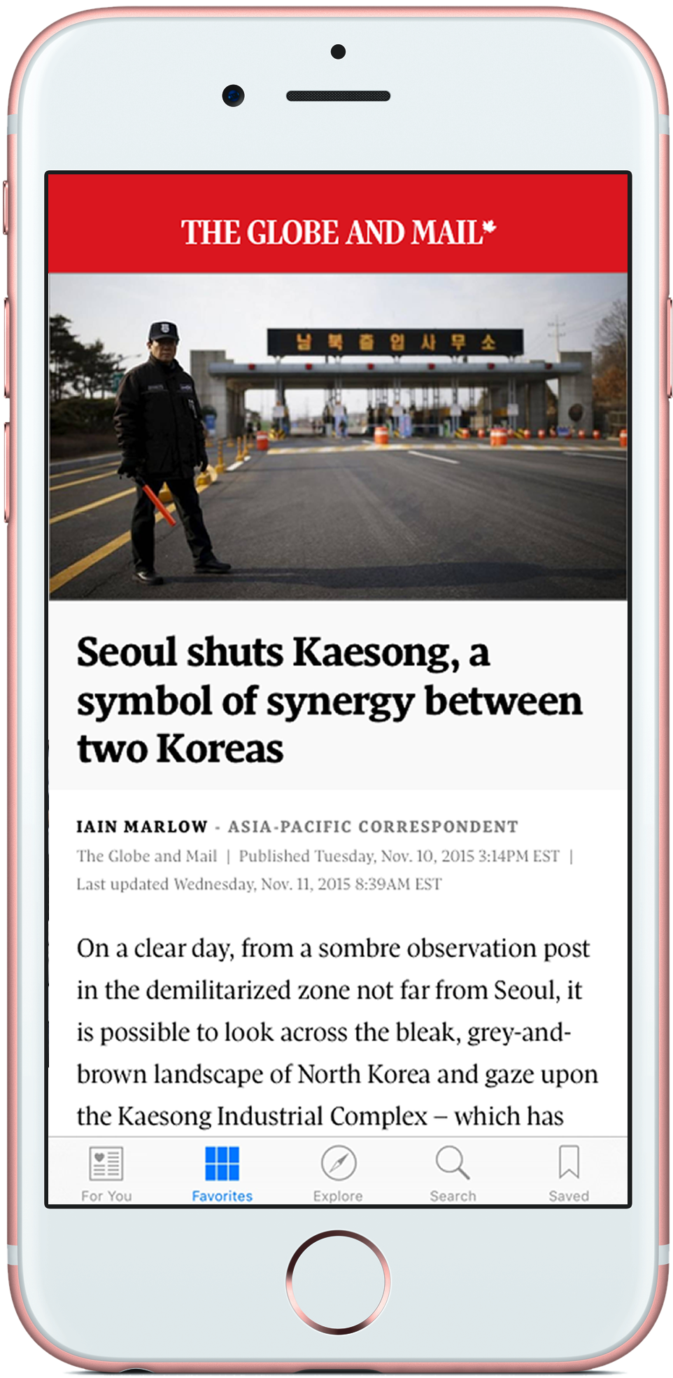 The Globe and Mail's content made available as rich story experiences under its official channel within the Apple News app.