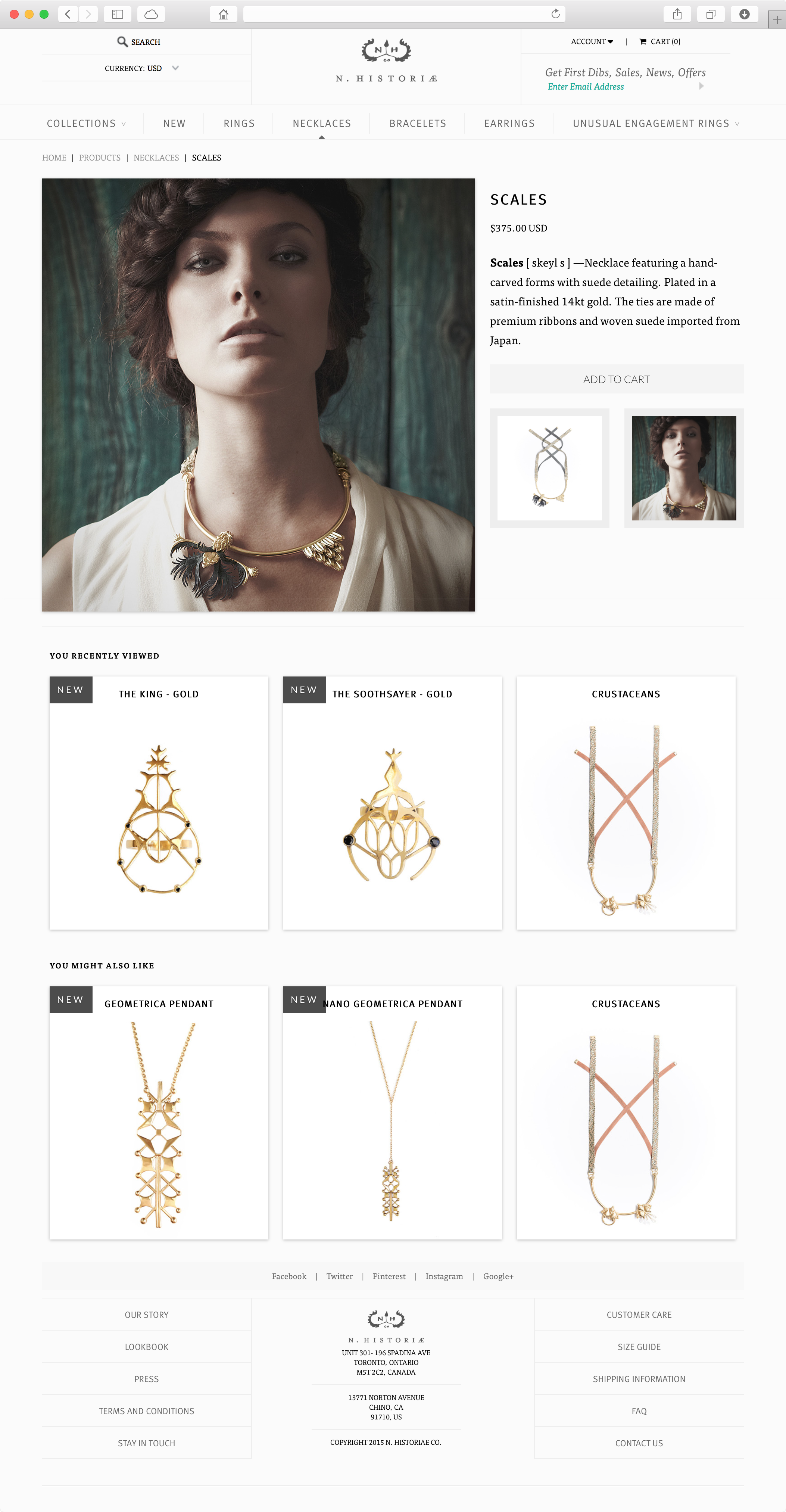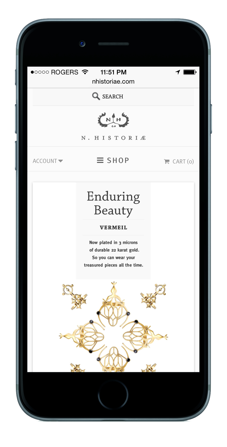 Creative direction for the Canadian-based jewellry label. Touch-points include the boutique atelier's brand identity, sourcebook catalogues and web presence. The responsive-web E-ccomerce website launched in January 2015 serves as the primary sales platform for the upmarket firm.